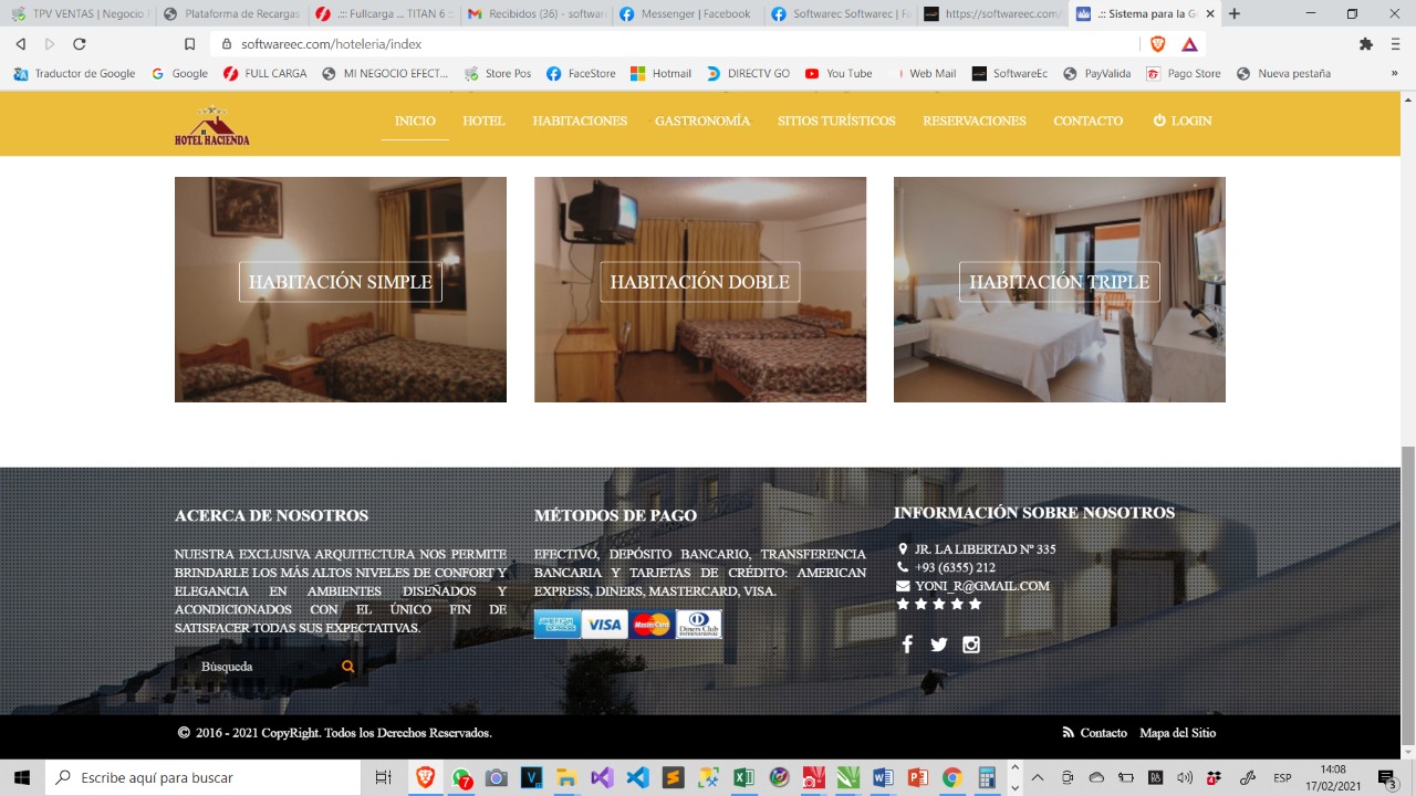 Sistema Hotelero para resort, Hostal, Hoteles. Venta rápida Reserva online Caja cierre y apertura Control de informes Reportes Control de empleados Asignaciones de cama Venta de productos Reportes